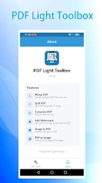 أداة PDF Light Toolbox هي أداة خفيفة الوزن مصممة لأجهزة الأندرويد، متخصصة في مهام معالجة PDF. تدعم هذه الأداة واجهتين باللغتين الإنجليزية والصينية، مما يجعلها متاحة لجمهور أوسع. يمكن للمستخدمين الاستمتاع بتجربة سلسة دون الحاجة إلى بيانات اعتماد تسجيل الدخول، مما يضمن الوصول السريع والسهل إلى ميزاتها. التطبيق خالٍ من الإعلانات، مما يسمح بالاستخدام دون انقطاع، مما يعزز تجربة المستخدم بشكل عام.
